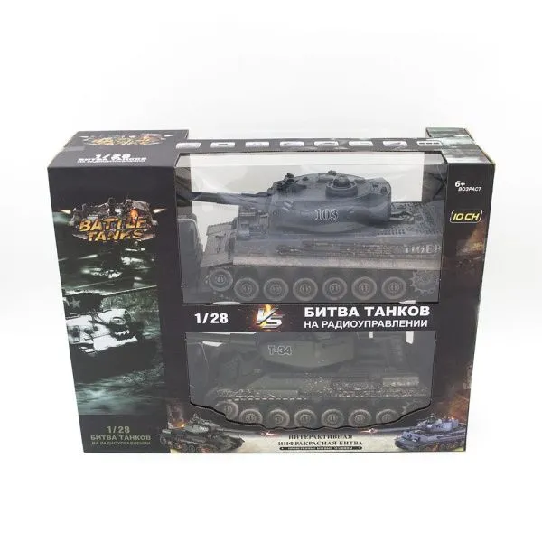 Радиоуправляемый танковый бой Русский и Немецкий танк 2.4G - ZEG-99824-RU- это набор из двух радиоуправляемых моделей танков, которые работают на частоте 2.4G. Стрельба осуществляется инфракрасным лучом на расстояние до 3 м в секторе до 10 градусов. Имитируется выстрел пушки. На задней части башни 5 светодиодов жизнеспособности танка. Танк издает звук работы двигателя и звук выстрела орудия. Питание танка происходит от аккумулятора 4.8v 700mAh, а зарядное устройство входит в комплект поставки. Игрушка имеет сертификат соответствия EAC и рекомендуется детям от 5 лет.